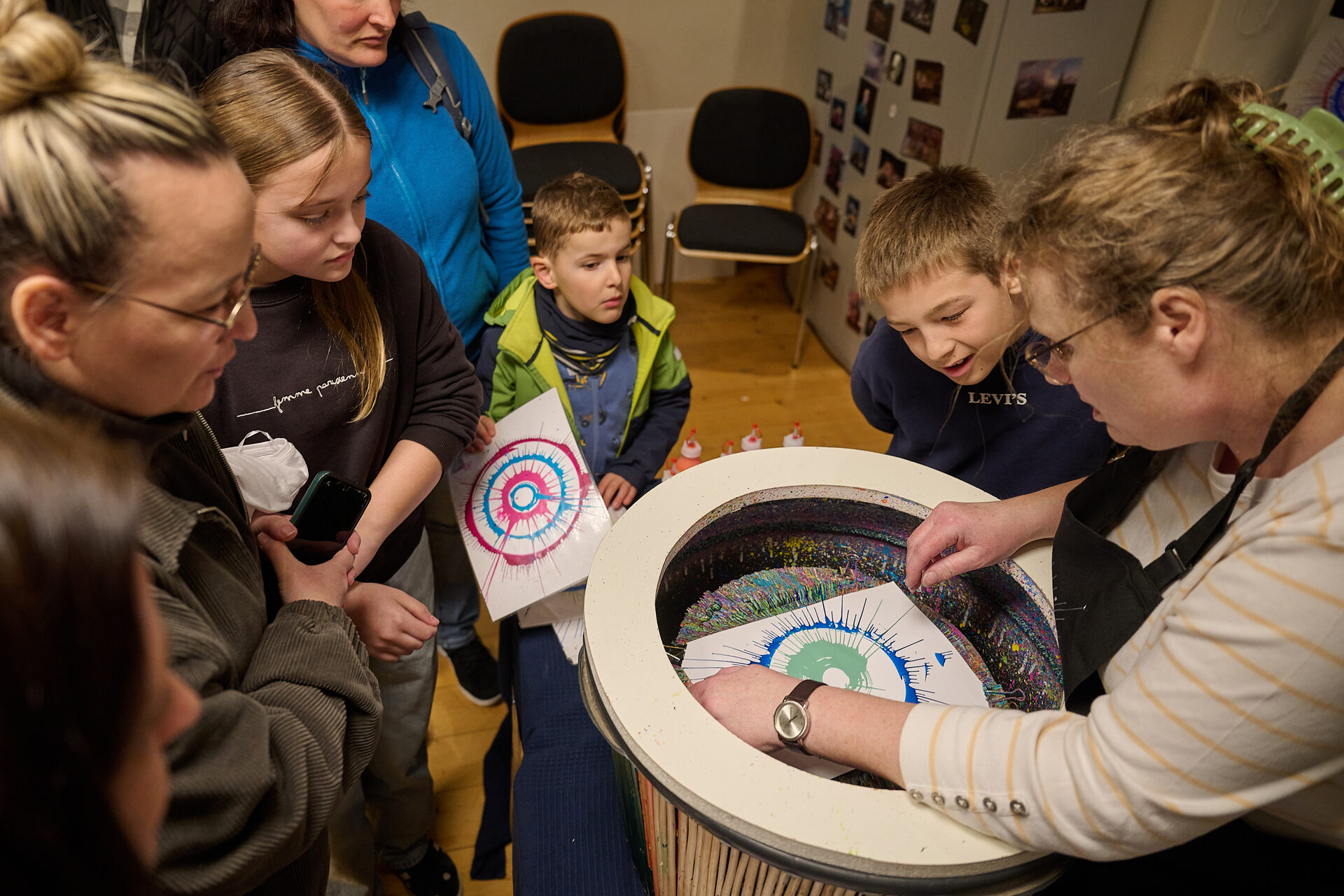 Im ZwischenRAUM der KUNSTSAMMLUNGEN Zwickau Max-Pechstein-Museum wirbelten Farben in der Malschleuder und Stoffstücke wurden zu einzigartigen Kunstwerken. „Es ist ein Moment voller Magie, wenn Kinder staunend zusehen, wie aus einem weißen Stoffstück ein buntes Unikat entsteht“, berichtet Anne Krzyminiewski, Museumspädagogin der KUNSTSAMMLUNGEN. Im Schüler-Lab der WHZ verschmolzen Wissenschaft und Magie. Schimmerndes Wasser, geheimnisvolle Farben und leuchtende Effekte ließen Experimente zu echten Wundern werden. Kinder sprangen aufgeregt auf, wenn sich Blasen und Farbspiele plötzlich in etwas völlig Unerwartetes verwandelten, und diskutierten miteinander, wie diese Wunder wohl zustande kommen könnten. „Hier wurden Kinder selbst zu kleinen Forschern, probierten Hypothesen aus und versanken dabei völlig in ihrer eigenen Entdeckungswelt“, erzählt Silke Dinger.